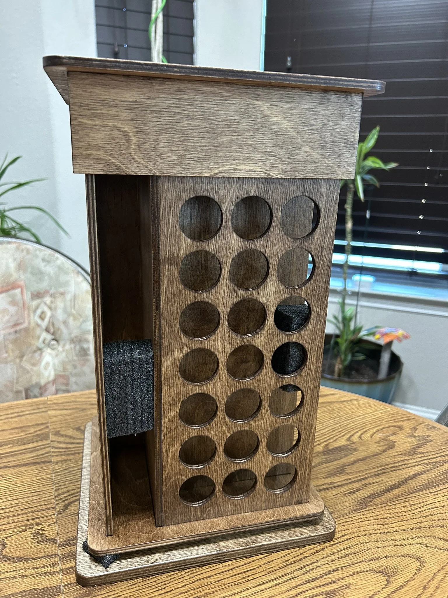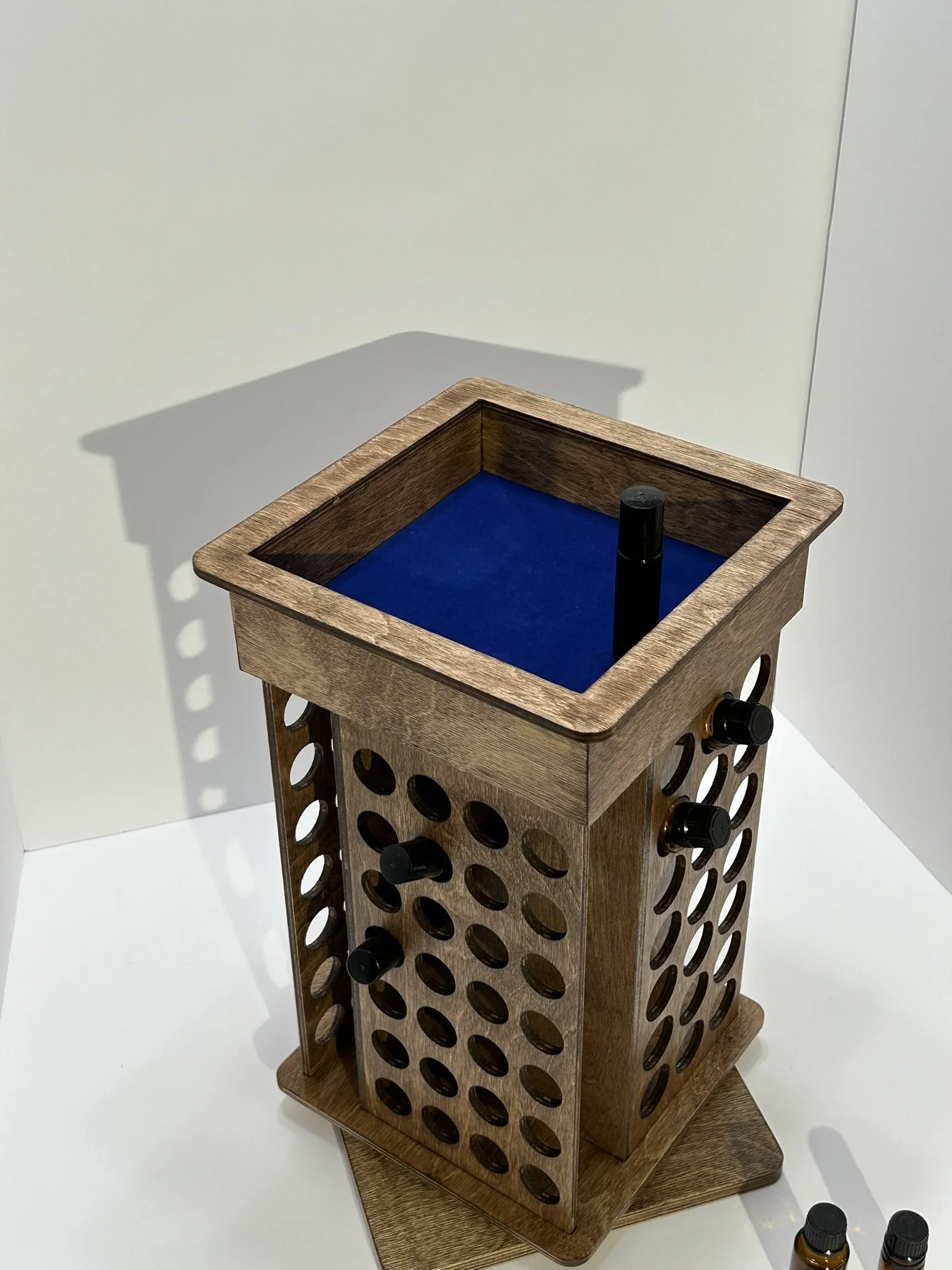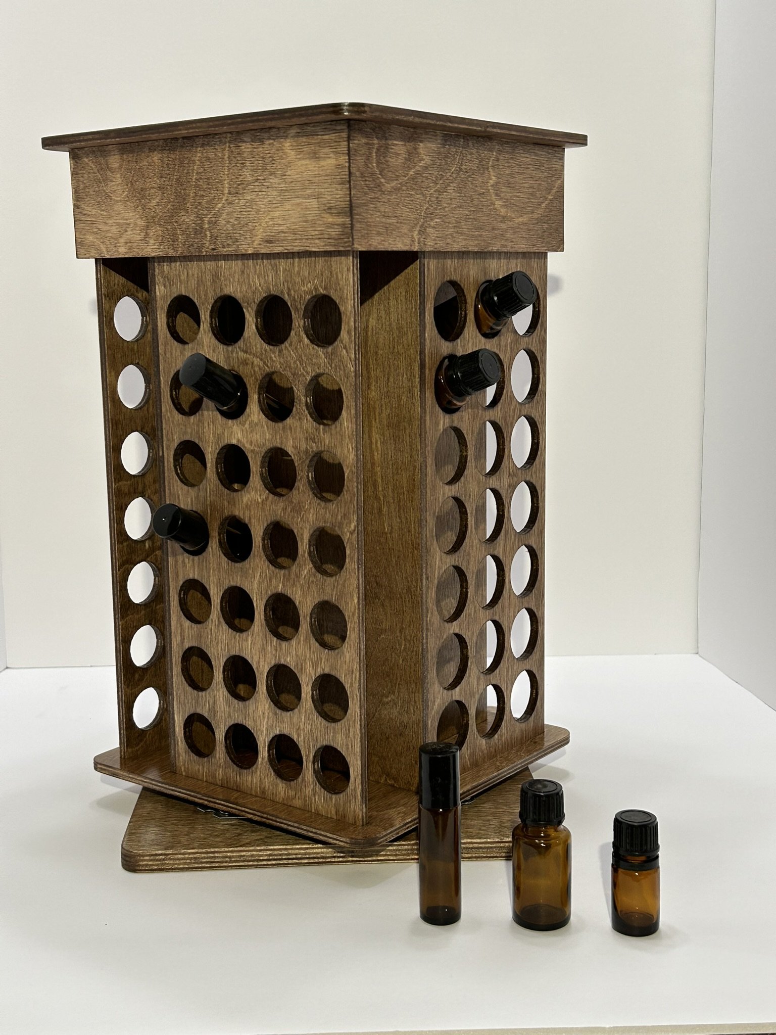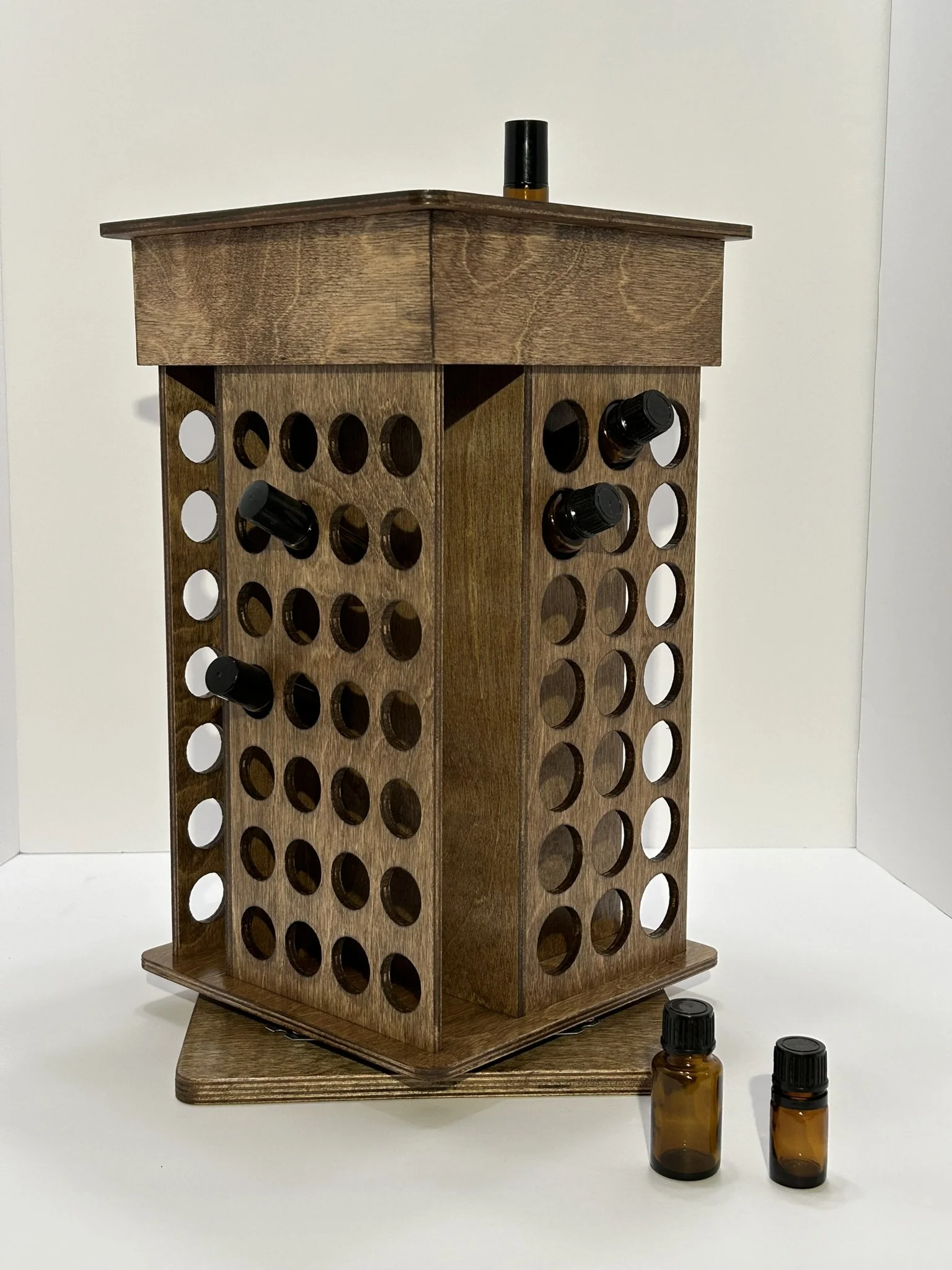 From small stands that hold a few of your favorite oils to larger towers that can hold over a 100 bottles and reference books.